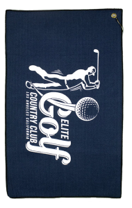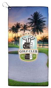 Our velour golf towels are soft and absorbent 320 GSM. Versatile promo gift for sport related campaigns. Sublimated velour terry cotton blend tri-folded golf towel, flat towel in 2 sizes are available 11″x18″ or 16″x26″. Available in every pantone PMS color when sublimated. Unlimited graphics and sponsor logos can be decorated. The inner part of the towel which you don’t see remains white. 50% cotton / 50% polyester, no ink feel with sublimation decoration. Use for Sports, Athletic Events, New Product Launches, Spa, Salons, Corporate Gifts. Price includes full color sublimation, brass hook & grommet is included No set-up fees when camera ready art is provided.