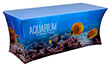 Premium Sublimated Stretch Curved Fit Table Throw for 6ft and 8 ft tables 4 sided Closed Back. Stretch Fabric premium weight is 260 gsm with upgraded finishing. This form-fitting throw has a clean look to it and is the perfect option for promoting your brand. It stretches to fit tightly around tables creating a crisp refined appearance. Stand out from the competition at trade shows with these clean look stretch fit table covers. Four-sided table cover creates a lasting impression. Two-way Stretch Fabric. Simple storage. Closed back makes it easy to hide materials underneath table. Lightweight convenient for traveling and shipping. Usage: Presentations, trade shows, retail stores, events, school functions, fundraisers. Price includes full color imprint. Max Imprint: 127″ W x 85″ H.